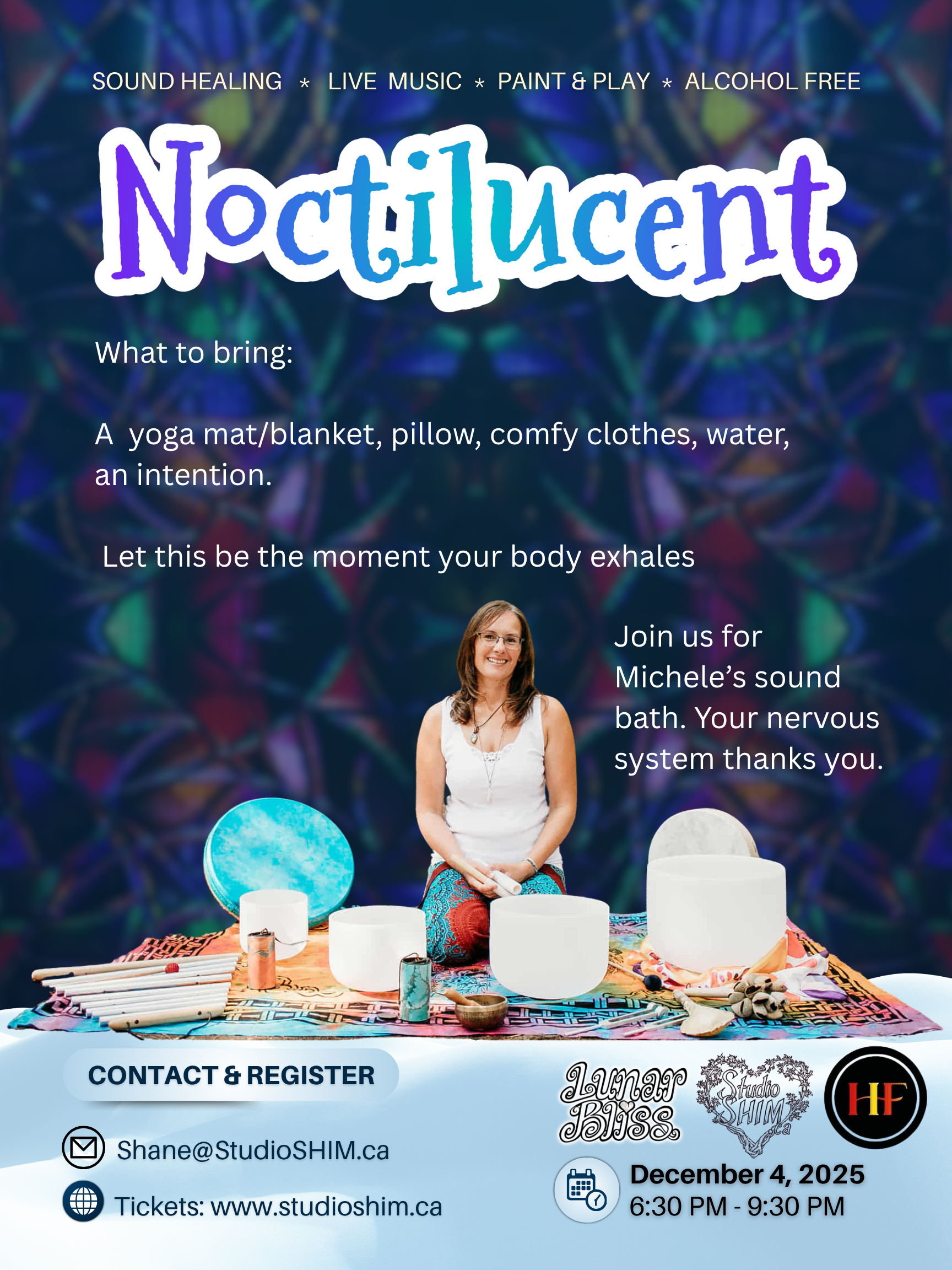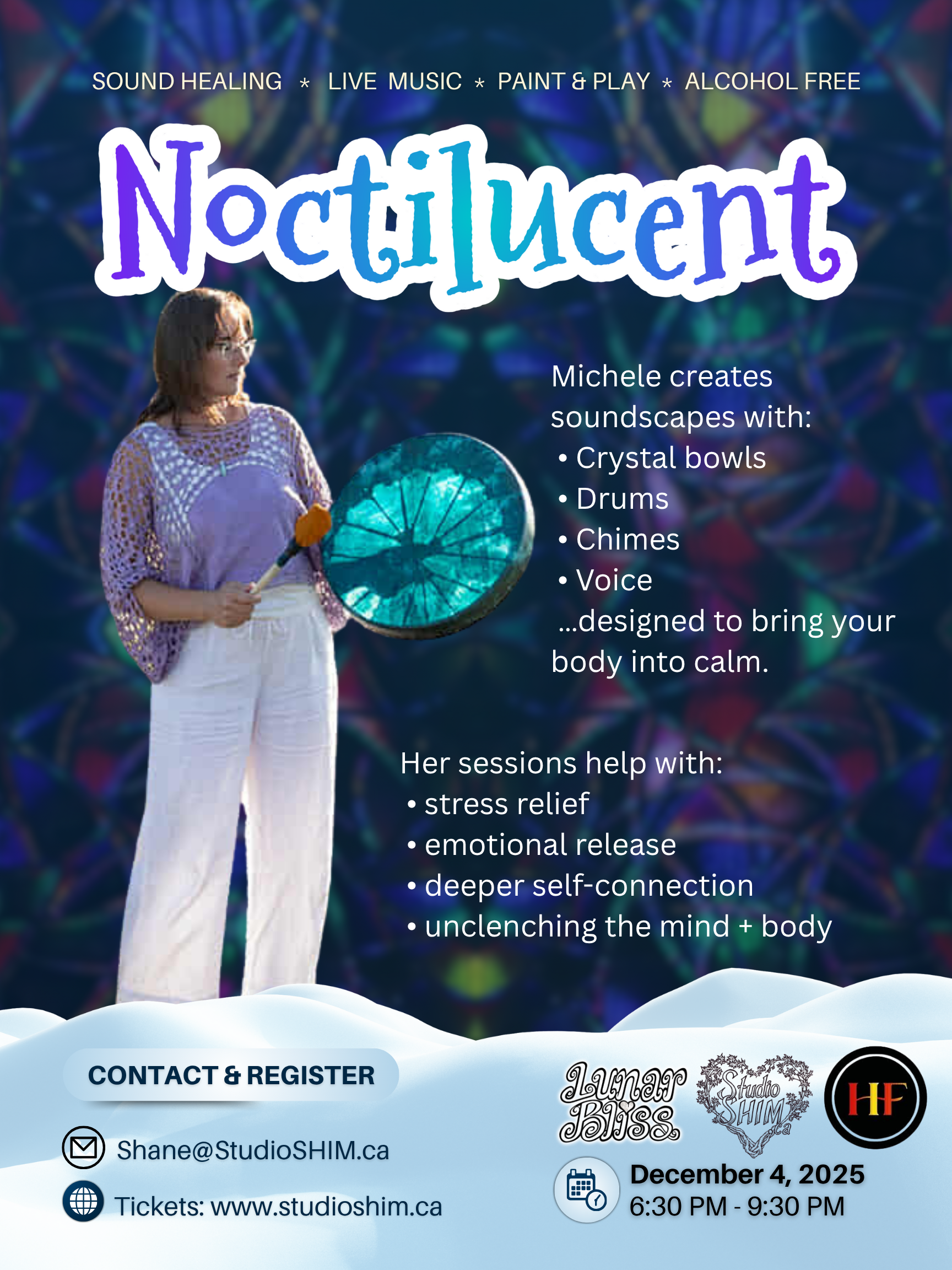 Join us for the final Lunar Bliss gathering of 2025 ... a sound, art, and movement experience created to help you reset and step into the winter season with clarity. This is a community night for anyone looking for creativity, grounding, and an alcohol-free space to breathe. No experience is needed to enjoy!